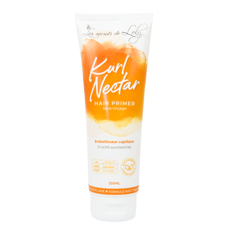 La crème sans rinçage "Kurl Nectar" de chez Les Secrets de Loly est un véritable soin à base d'agents humectants, hydratants, nourrissants, réparateurs, démêlants et restructurants. Ce leave-in protège contre les facteurs environnementaux (la sécheresse, l'humidité, la chaleur des appareils chauffants) sans alourdir et empêche les frisottis. Il redessine parfaitement les boucles. Son délicieux parfum fruité et gourmand rendra votre routine de coiffage agréable.