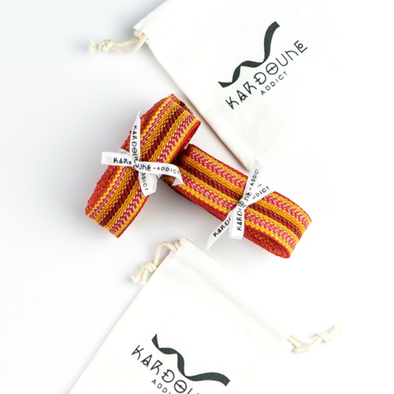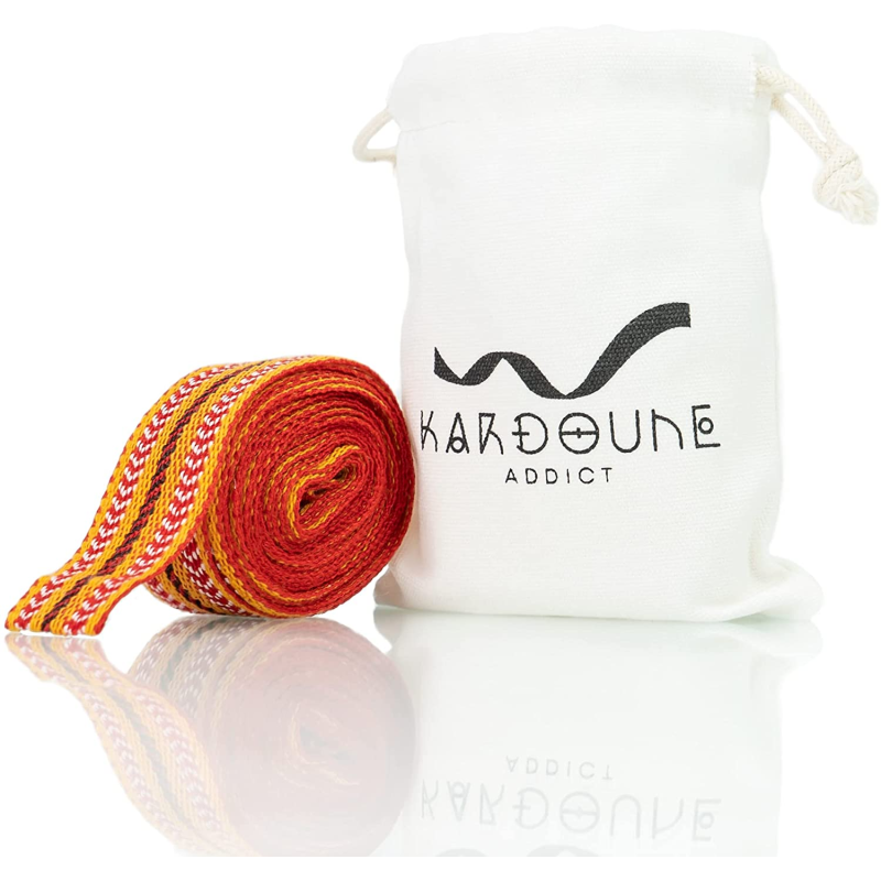 | Conseils d'utilisation | 1) Après avoir lavé tes cheveux, utiliser un soin sans rinçage lissant. un utilise le sèche-cheveux (air tiède) afin de les raidir un maximum. 2) Lorsque tes cheveux sont secs, fait une queue-de-cheval basse et de préférence sur le coté avec un élastique sans trop le serrer (tu peux appliquer quelques gouttes d'huile ex. Jojoba afin d'apporter encore plus de brillance et douceur aux cheveux) 3) Prendre l'un des extremité du Kardoune entre les dents et commencer à l'enrouler des racines aux pointes. 4) Pour nouer le Kardoune, faire un noeud en joignant les deux extremités entre elles. Attention ne pas trop serer les premiers tours pour pas faire de marque 5) Laissez le Kardoune minimum 2 heures (selon la densité des cheveux) ou toute une nuit. |