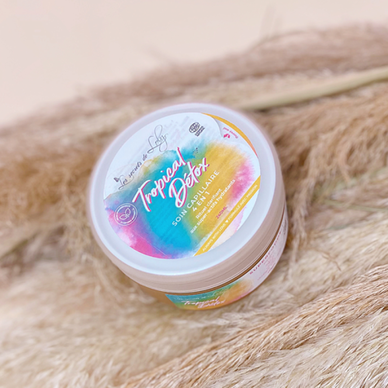 Le soin 4-en-1 "Tropical Détox" de chez Les Secrets de Loly est un rituel soin claifiant aux supers actifs hydratants. Il élimine les accumulations de dépôts et les impuretés et purifie naturellement le cuir chevelu. Ce soin permet de repartir sur une base saine. Il va permettre de combattre les méfaits dûs à la pollution et aux colorations. Il va purifier les cheveux et le cuir chevelu pour redonner vie à vos cheveux naturels. Il convient aux cheveux naturels, colorés ou en transition.