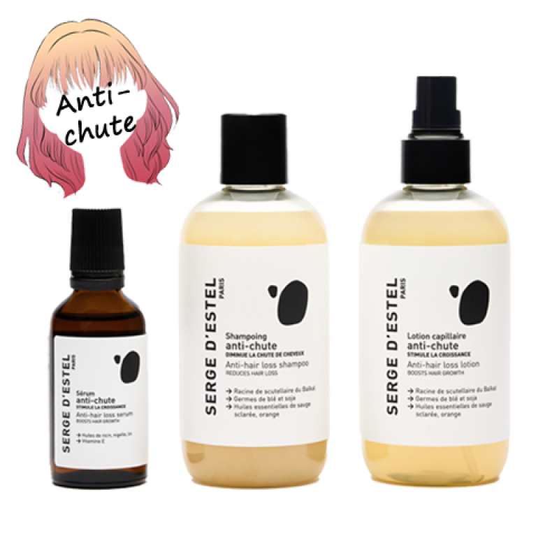 La routine Anti-Chute de chez Serge d'Estel Paris est un rituel complet pensé pour freiner la chute, stimuler la pousse et redonner de la densité à vos chevelure.