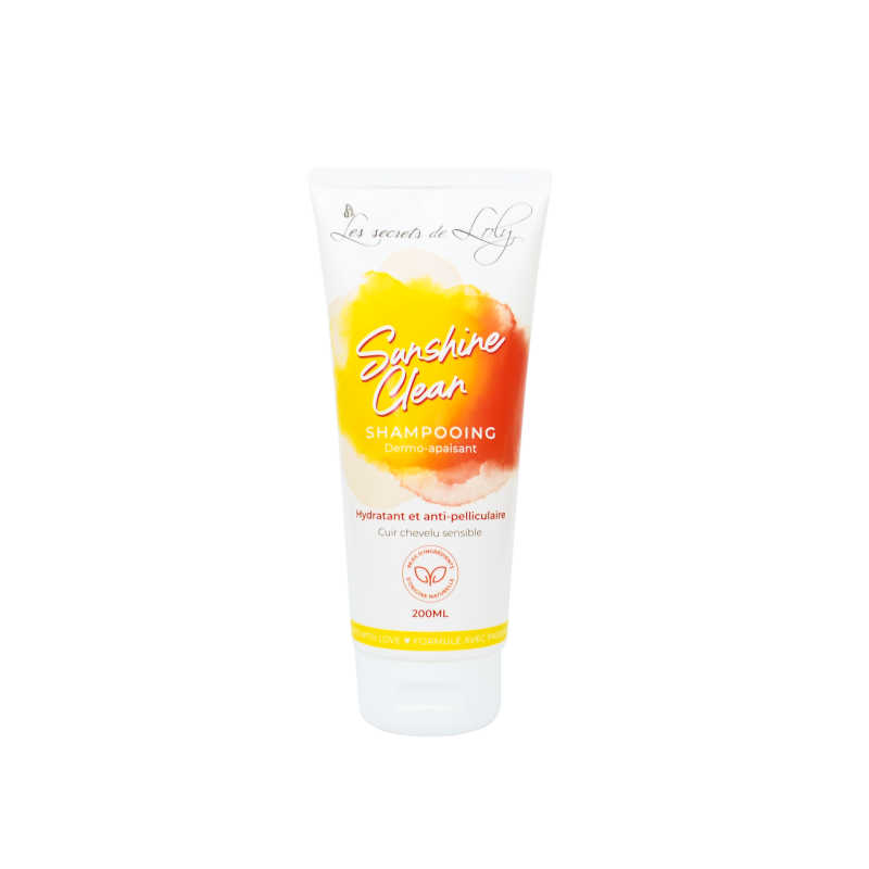 Le shampoing "Sunshine Clean" de chez LesSecrets de Loly est idéal pour les cuirs chevelus sujets aux démangeaisons, aux pellicules ou aux inconforts grâce à l'action purifiante de son huile essentielle de citron. Son efficacité entrainera une réduction de 55% des pellicules dès le 1er mois.