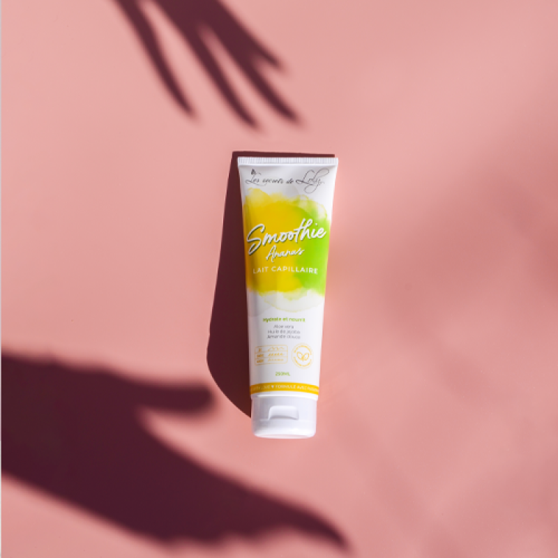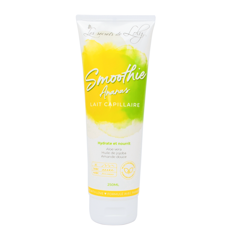 Le lait capillaire "Smoothie Ananas" de chez Les Secrets de Loly est un complexe hydratant qui apporte toute la nutrition nécessaire à vos cheveux secs. Ce smoothie répare, protège, adoucit et limite les fourches tout en lissant les écailles. Son parfum fruité et sa texture lactée vous rappelleront l'été.