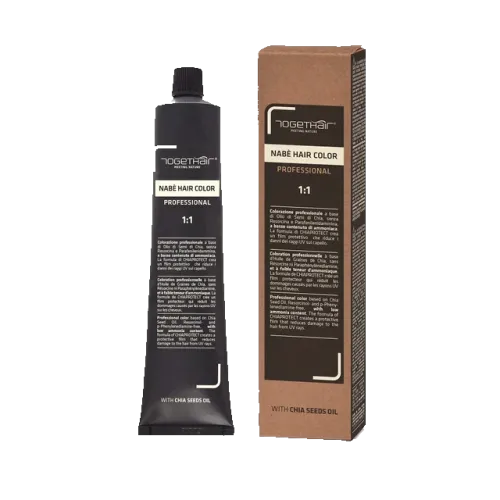 La Coloration naturelle "Nabé Hair Color" de Togethair à base d'huile de graines de chia, sans Résorcine ni Paraphénylènediamine, et à faible teneur en ammoniaque. La formule CHIAPROTECT crée un film protecteur qui réduit les dommages causés par les rayons UV sur les cheveux. A utiliser avec un oxydant 10 volume ou 20 volume.