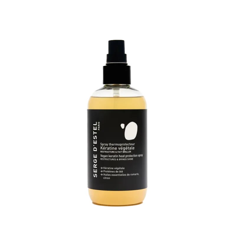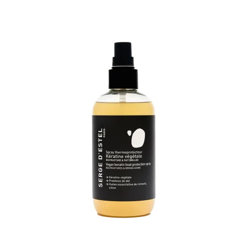 Le Spray thermoprotecteur "Kératine végétale" de Serge d'Estel est un véritable bouclier contre les dommages causés par la chaleur et les agressions extérieures. Ce spray léger et non gras prévient la casse, les pointes fourchues et le dessèchement, pour une chevelure lisse, brillante et résistante. Avec une utilisation régulière, les cheveux sont restructurés, gainés, sublimés, débarrassés des frisottis et retrouvent leur éclat naturel.