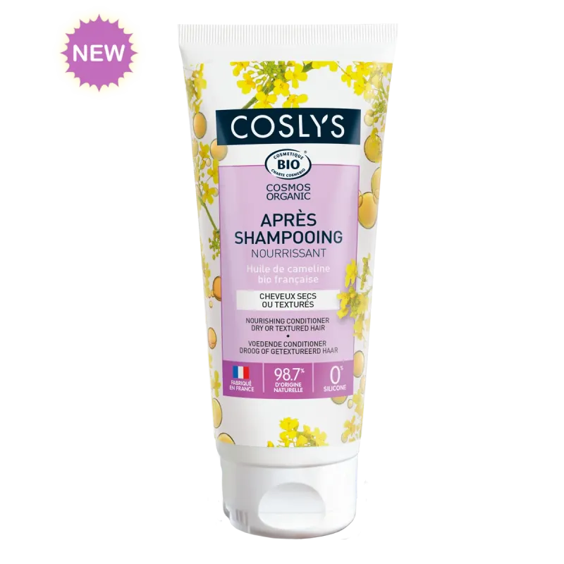 The Nourishing Conditioner by Coslys is a complete natural treatment specially formulated for dry, curly and textured hair. Enriched with organic French camelina oil, known for its softening and repairing properties, it hydrates, nourishes and strengthens the hair fibre deeply while making detangling easier.