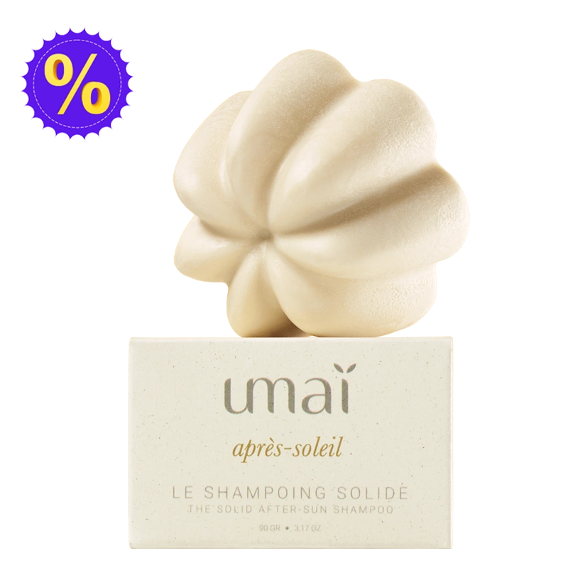 The After-Sun Solid Shampoo by Umaï is a natural and eco-friendly hair care product specially formulated for all hair types, including color-treated hair and sensitive scalps. Designed to gently cleanse after sun exposure, it helps maintain healthy, shiny, and soft hair throughout the summer season.